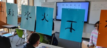 1000 von den Schülern selbst gebastelte weiße Kraniche sollen Glück und Frieden für die Zukunft bringen!