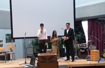Am 19. März bereits fanden unter der Anleitung von Frau Todorowa und Herrn Wagner aufgeregt und voller Vorfreude letzte Proben auf der Bühne des Festivals statt. Am nächsten Tag gab es dann die sogenannte 'Häppchenparade', d.h. jede der 15 Theatergruppen führte einen kleinen Ausschnitt aus ihrem Theaterstück vor. Unsere Aufführung hatten wir dann am 21.März. Zum ersten Mal spielten unsere Schülerinnen und Schüler auf einer richtigen großen Bühne, mit professioneller Technik und vor allem vor über 100 Zuschauern!