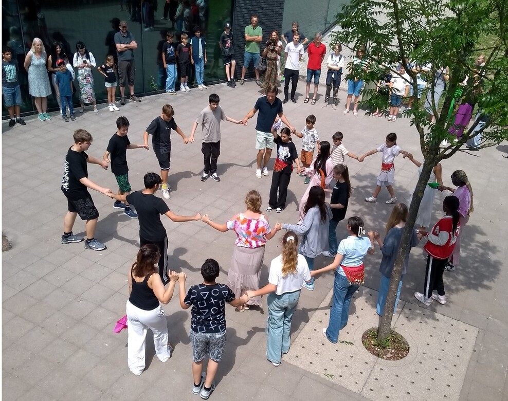 Am Samstag, 20. Juli 2024 wurden im Rahmen eines großen Festes die Ergebnisse unseres diesjährigen Schulprojektes „Togetherness“ präsentiert. 10 Künstlerinnen und Künstler aus München hatten davor unsere Schülerinnen und Schüler beim gemeinsamen Gestalten von Kunstwerken unterstützt. Im Vordergrund stand hierbei das Erleben von Gemeinschaft, was in den Covidjahren im Online Unterricht von uns allen schmerzhaft vermisst worden war. Die Schule wurde zur Kunstausstellung und die Schulfamilie konnten die entstandenen Werke bewundern und in Workshops an gemeinsamen Aktionen teilnehmen. Den Abschluss bildete ein Tanz mit Livemusik auf dem Schulhof, der dem Tag einen fröhlichen Ausklang verlieh.